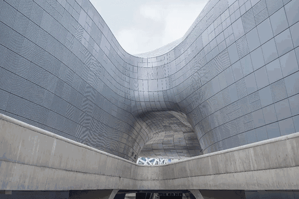 東大門設(shè)計(jì)廣場DDP則由另外一名女性普利茲克獎(jiǎng)得主扎哈·哈迪德(Zaha Hadid)完成,與美術(shù)館不同,設(shè)計(jì)廣場用“超時(shí)空的流線”構(gòu)建了一個(gè)未來的公共空間