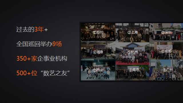 光陰荏苒,日月如梭,轉眼之間,數藝之友咖啡館沙龍活動今天已經迎來了全國巡回的第十站。在過去的三年多時間里,我們分別在蘇州、上海、深圳、北京、杭州、成都、西安、廣州、南京依次舉辦。經不完全統計,在過去的九場活動中,我們累計迎來了超過500人,350多家企事業機構的參與。