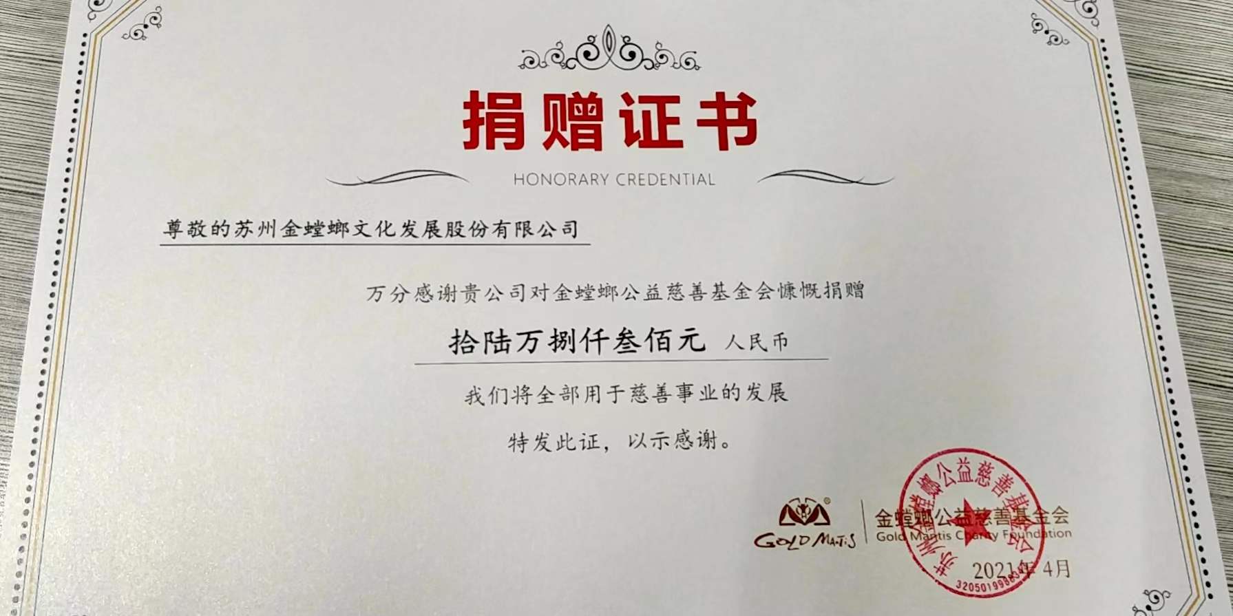 讓善意的種子生根發(fā)芽,金螳螂文化每年組織員工愛心捐款。2021年籌集善款16.83萬元,全額捐贈給金螳螂公益慈善基金會,助力慈善事業(yè)的發(fā)展。