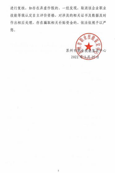 近日,蘇州工業園區人力資源和社會保障局公示了《2022年第一季度蘇州工業園區新增技能等級認定企業目錄》。