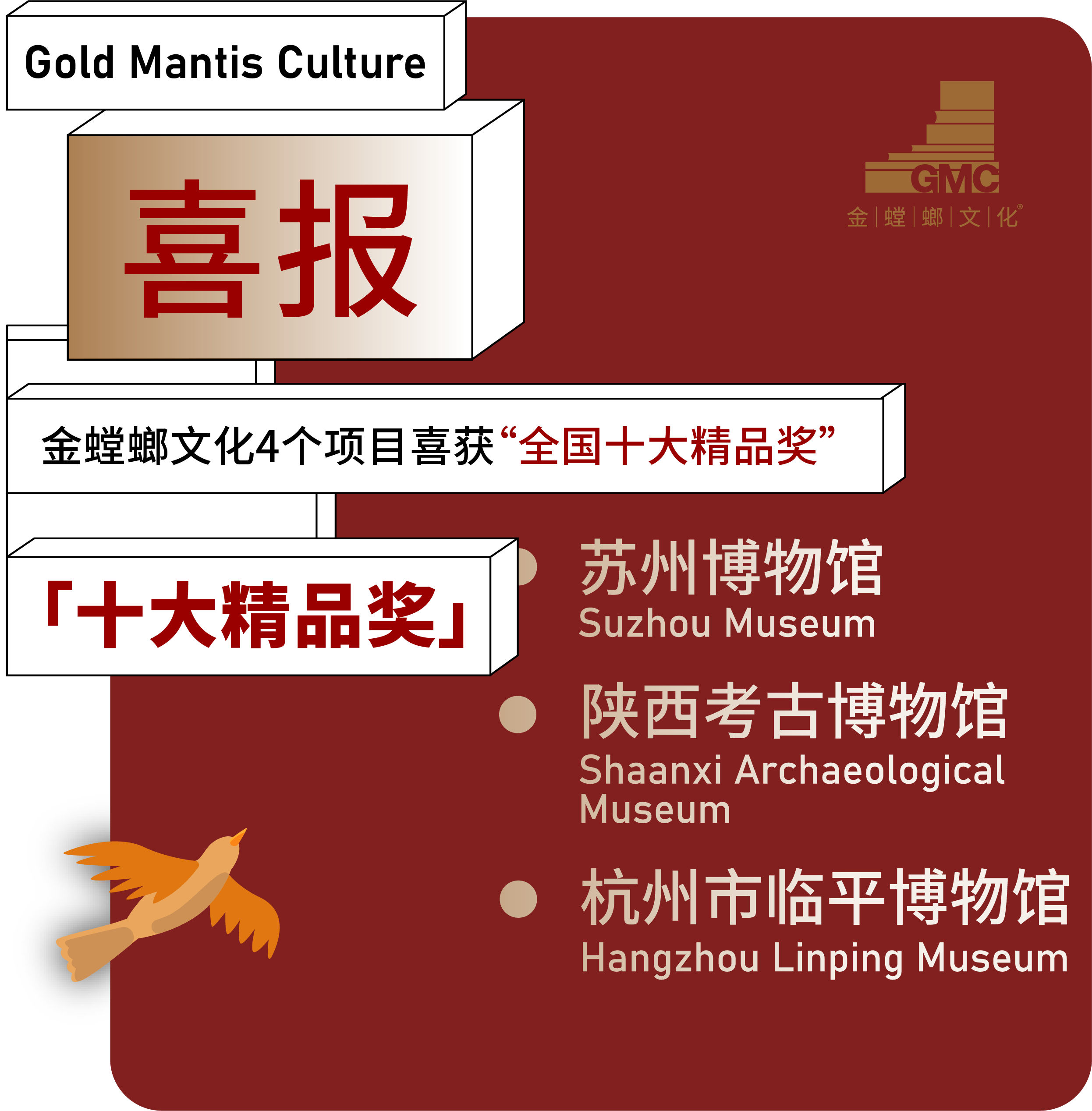 今天上午,由國家文物局指導,中國博物館協會、中國文物報社主辦的第二十屆(2022年度)全國博物館十大精品陳列展覽精品推介活動,在“5·18國際博物館日”中國主會場福建揭曉結果。 金螳螂文化三大項目喜獲第二十屆(2022年度)全國博物館十大陳列展覽「精品獎」! ① 純粹江南 技憶蘇州——蘇州博物館西館基本陳列:蘇州博物館 ② 考古圣地·華章陜西——陜西考古博物館基本陳列:陜西考古博物館 ③ 春風又綠——江南水鄉文化展: 杭州市臨平博物館 “西藏博物館基本陳列——西藏歷史與文化、民俗展”喜獲全國博物館十大陳列展覽推介項目「特別獎」! 活動同時公布了“2023年度全國最具創新力博物館名單”,金螳螂文化項目“揚州中國大運河博物館”榮登榜單。 蘇州博物館西館位于江蘇省蘇州市高新區獅子山下,展陳面積13391平方米?!?strong style="box-sizing: border-box">純粹江南 技憶蘇州——蘇州博物館西館基本陳列”展覽包括“純粹江南”與“技憶蘇州”兩個部分,圍繞如何解讀作為江南核心的蘇州,以一萬年蘇州歷史和一千年蘇作工藝為主題,講述蘇州故事,展示蘇作匠心。 由金螳螂文化設計打造的“純粹江南 · 蘇州歷史陳列”是蘇州地區首個通史陳列,用1200余件/套文物,講述蘇州萬年文明史、兩千五百年城市史,溯源蘇州文脈傳承和地域文化發展。 《考古圣地·華章陜西——陜西考古博物館基本陳列》展覽聚焦考古學科發展史和考古學理論、成果解讀、文保理念和技術三大主題,分為“考古歷程”“文化譜系”“考古發現”“文??萍肌彼膫€篇章。 展覽面積5800平方米,展線長度905米,展出文物4891件(套)。 杭州市臨平博物館,又名中國江南水鄉文化博物館,展覽面積2600平方米,展線370米,共展出文物929件(套)。 在國家“長江三角洲區域一體化發展”戰略時代背景下,為激發長三角地區文化自信,塑造文化認同,“春風又綠——江南水鄉文化展”從文化地理學的視野切入,通過五個單元,從地域、經濟、生活、人文、轉型五個維度全面解讀江南水鄉文化。 “西藏博物館基本陳列——西藏歷史與文化、民俗展”榮獲第二十屆(2022年度)全國博物館十大陳列展覽推介項目特別獎。 展覽由“雪域長歌——西藏歷史文化”和“離太陽最近的人——西藏民俗文化”組成,旨在通過西藏地區的悠久歷史和璀璨文明,闡釋歷代中央政府對西藏地方的主權行使及其各民族與其他兄弟民族之間的交往交流與文化互鑒。 展覽分為史前、唐宋、元明、清代民國、新西藏五個部分,展覽面積8705平方米,展線長度1900米、展品共2000件(套)。 揚州中國大運河博物館榮獲“2023年度全國最具創新力博物館”。 揚州中國大運河博物館坐落于江蘇省揚州市三灣古運河畔,總面積約8萬平方米。河坊街市,張燈結彩;坐聽雨聲,行觀四季;多樣體驗,皆聚于此。 金螳螂文化出品“因運而生——大運河街肆印象”、“大運河非物質文化遺產”、“運河濕地尋趣”3個展覽,助力傳承運河文化、講好運河故事、傳播運河聲音。 二十年展覽展示行業深度探索 從江南水鄉到神州大地 金螳螂文化結緣各地博物館 打造了眾多精品項目 愿以專業與敬業 共創博物館的可持續發展 與美好生活
